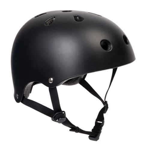 Een lichtgewicht helm in matzwarte uitvoering, geschikt voor kinderen of kleinere hoofdmaten (XXS/XS). De helm heeft een verstelbaar systeem voor een veilige en comfortabele pasvorm en ventilatieopeningen voor luchtcirculatie tijdens gebruik.