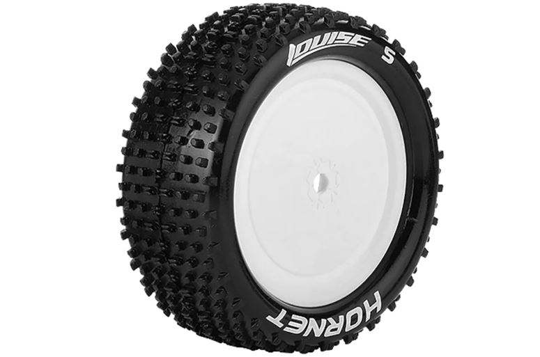 Reviews over Louise Louise RC - E-HORNET - 1-10 Buggy Tire Set - Mounted - Soft - White Wheels - Hex 12mm - 4WD - Front - L-T3170SWKF