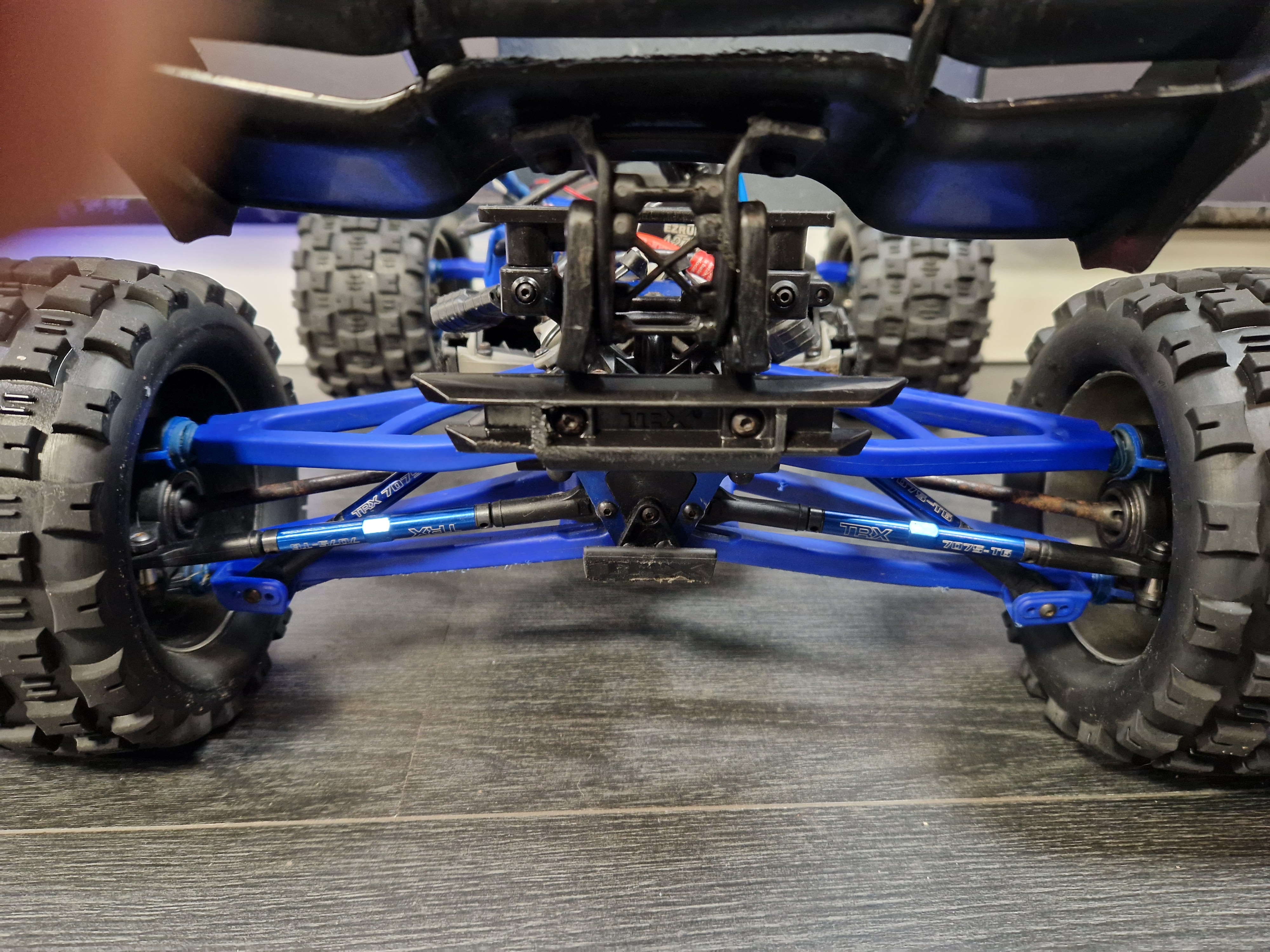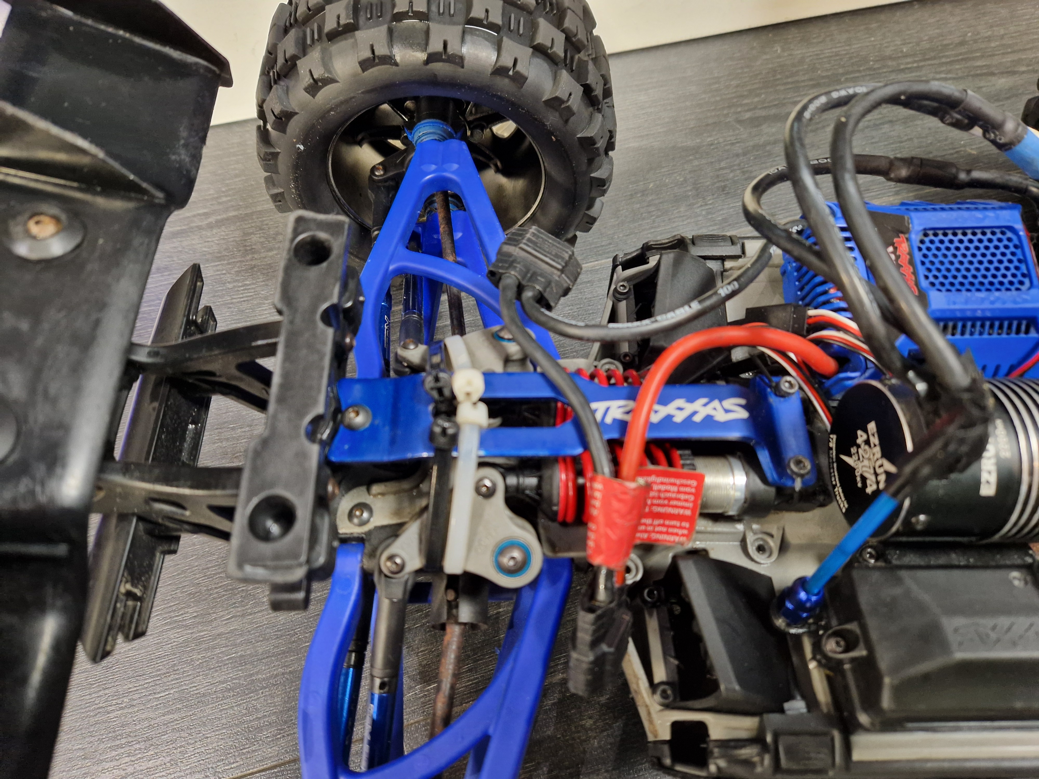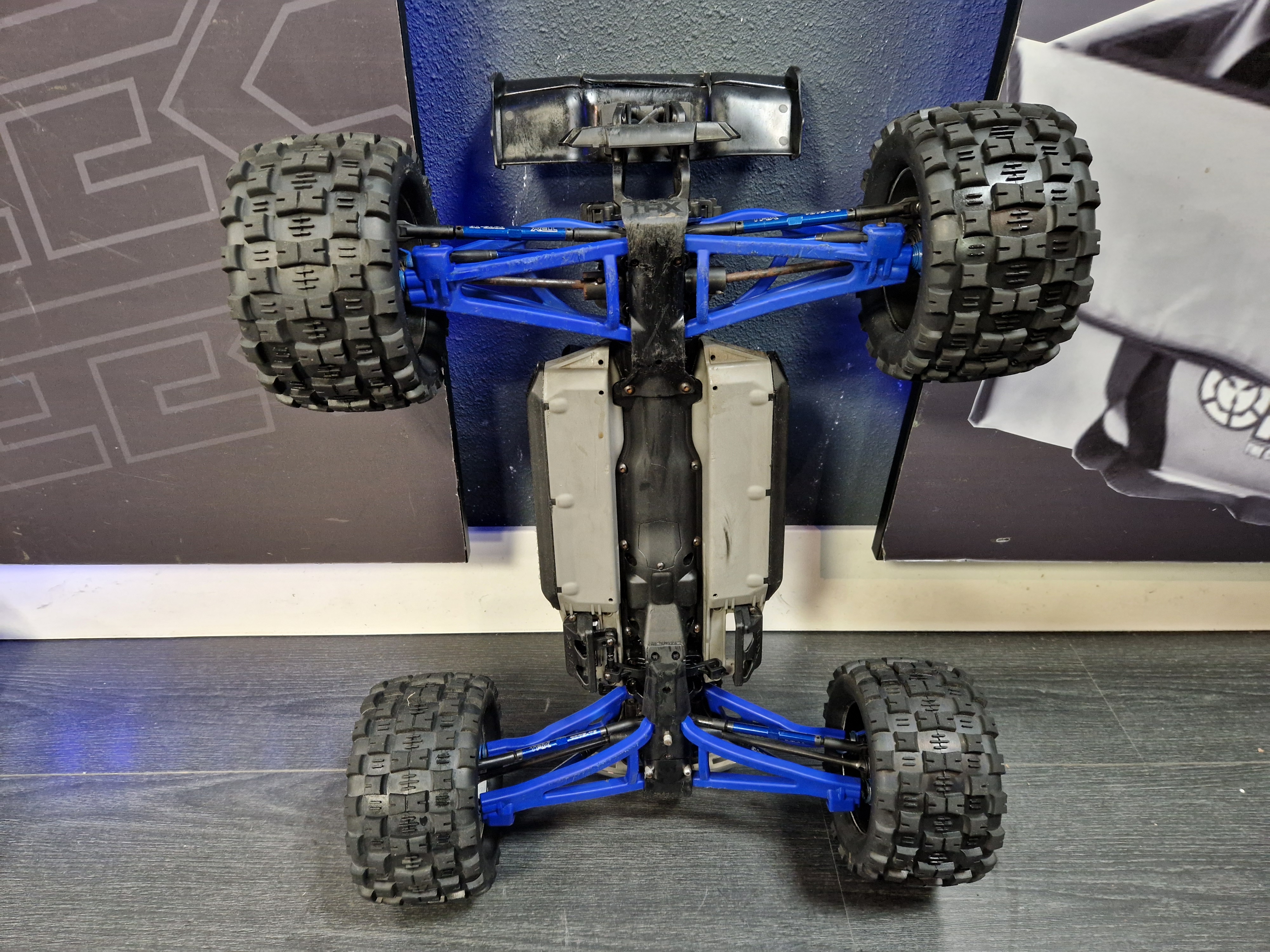 een Traxxas E-Revo 2.0 in nette staat, compleet met diverse upgrades en opties voor betere prestaties en duurzaamheid.