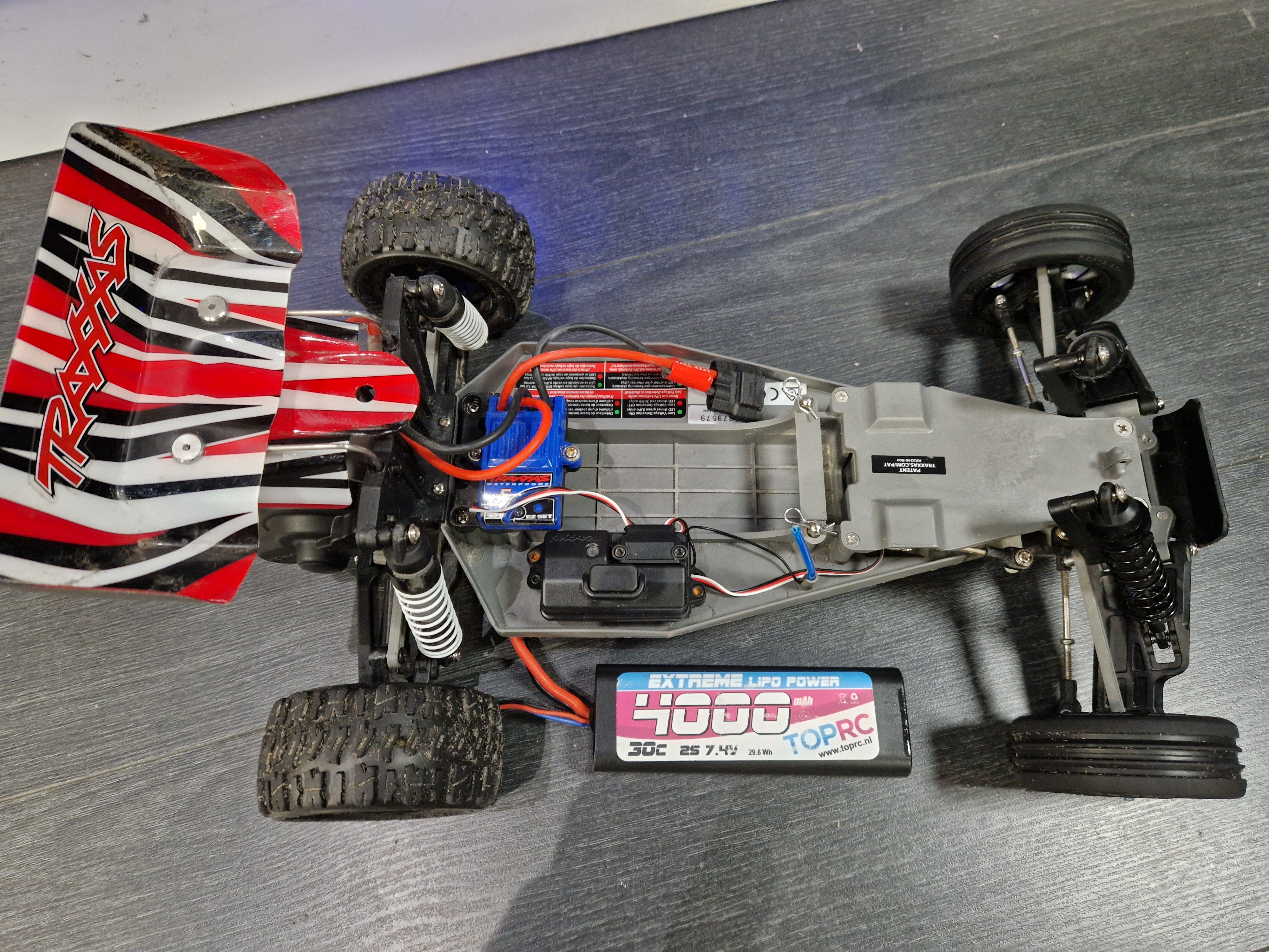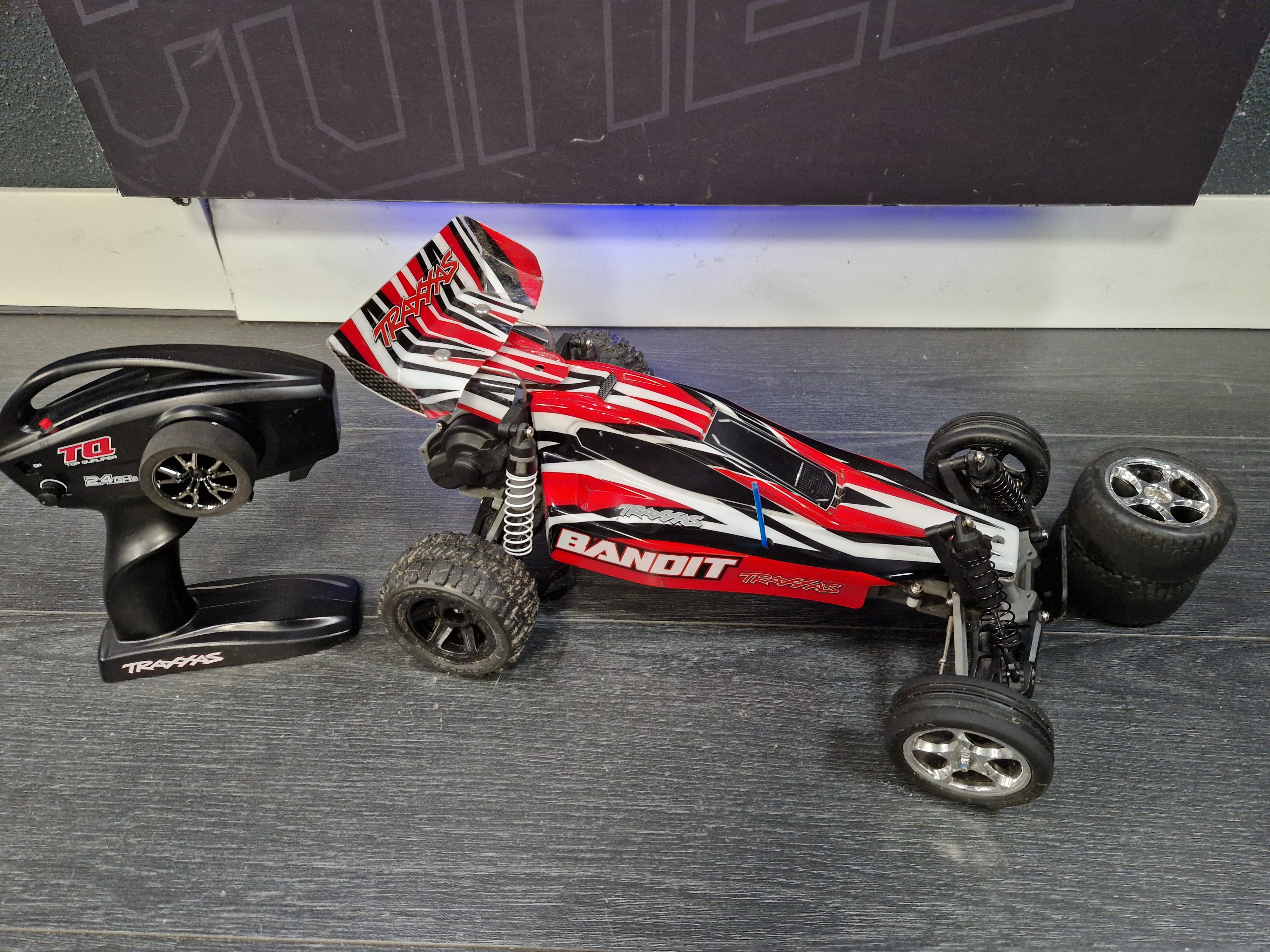 Nette Traxxas Bandit XL-5 2WD incl. 2 extra wielen en 2S lipo accu.