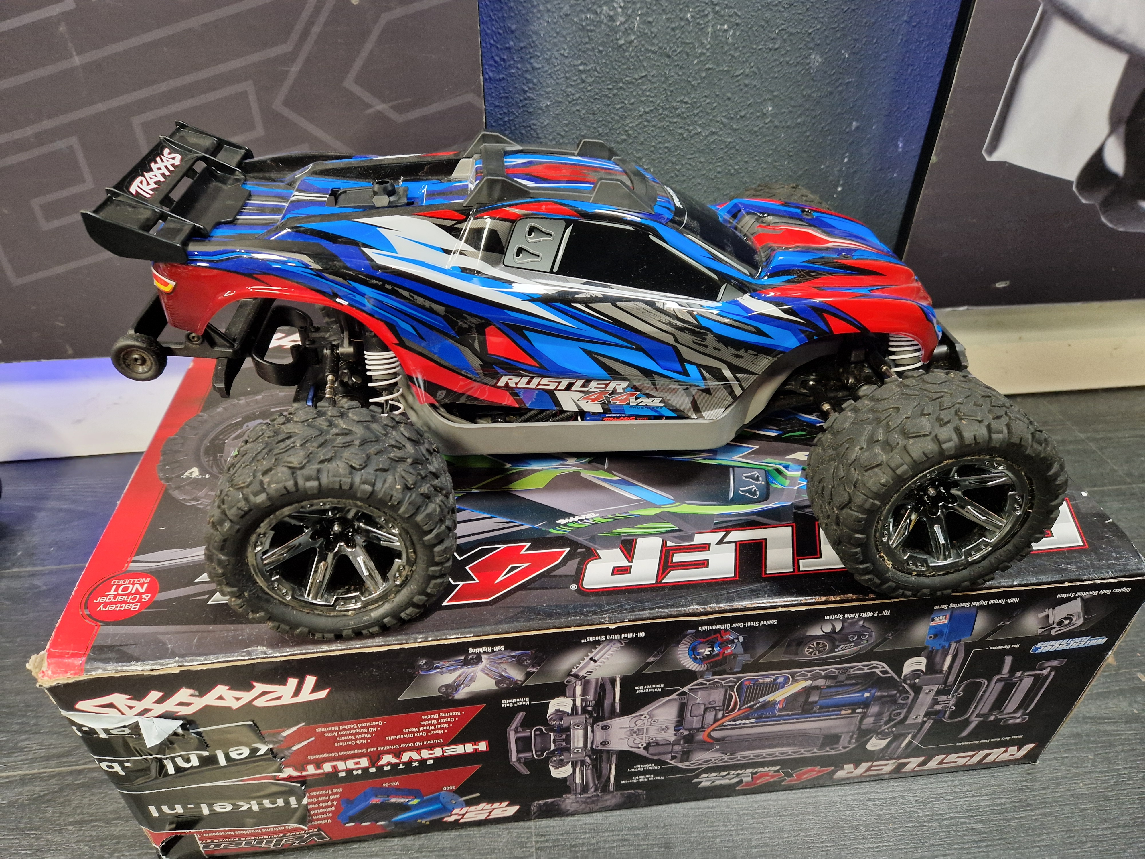 Traxxas Rustler 4X4 VXL in nieuwstaat, inclusief originele doos en garantie. Deze RC-auto biedt krachtige snelheid, 4X4 grip en betrouwbare prestaties, zowel op asfalt als off-road.