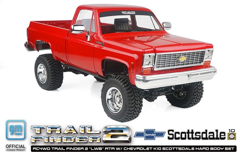 De RC4WD Trail Finder 2 LWB RTR met de Chevrolet K10 Scottsdale Hard Body is een schaal-1/10 terrein-crawler (rock crawler) die geleverd wordt als “Ready to Run” (RTR), dus je kunt hem gelijk gebruiken (afhankelijk van de accu).