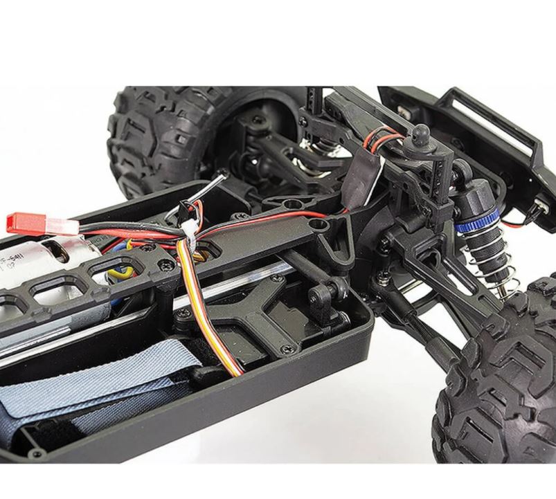 Aangedreven door een 390 sized brushed motor en micro 700mAh 2S Li-Ion batterij, is de Tracer snel en wendbaar....perfect voor bashen, springen en meer! Voor degenen die nieuw zijn in r/c-auto's, hebben we een snelheidsschakelaar toegevoegd om de snelheid van de Tracer te helpen instellen en deze beter beheersbaar te maken voor nieuwe bestuurders.