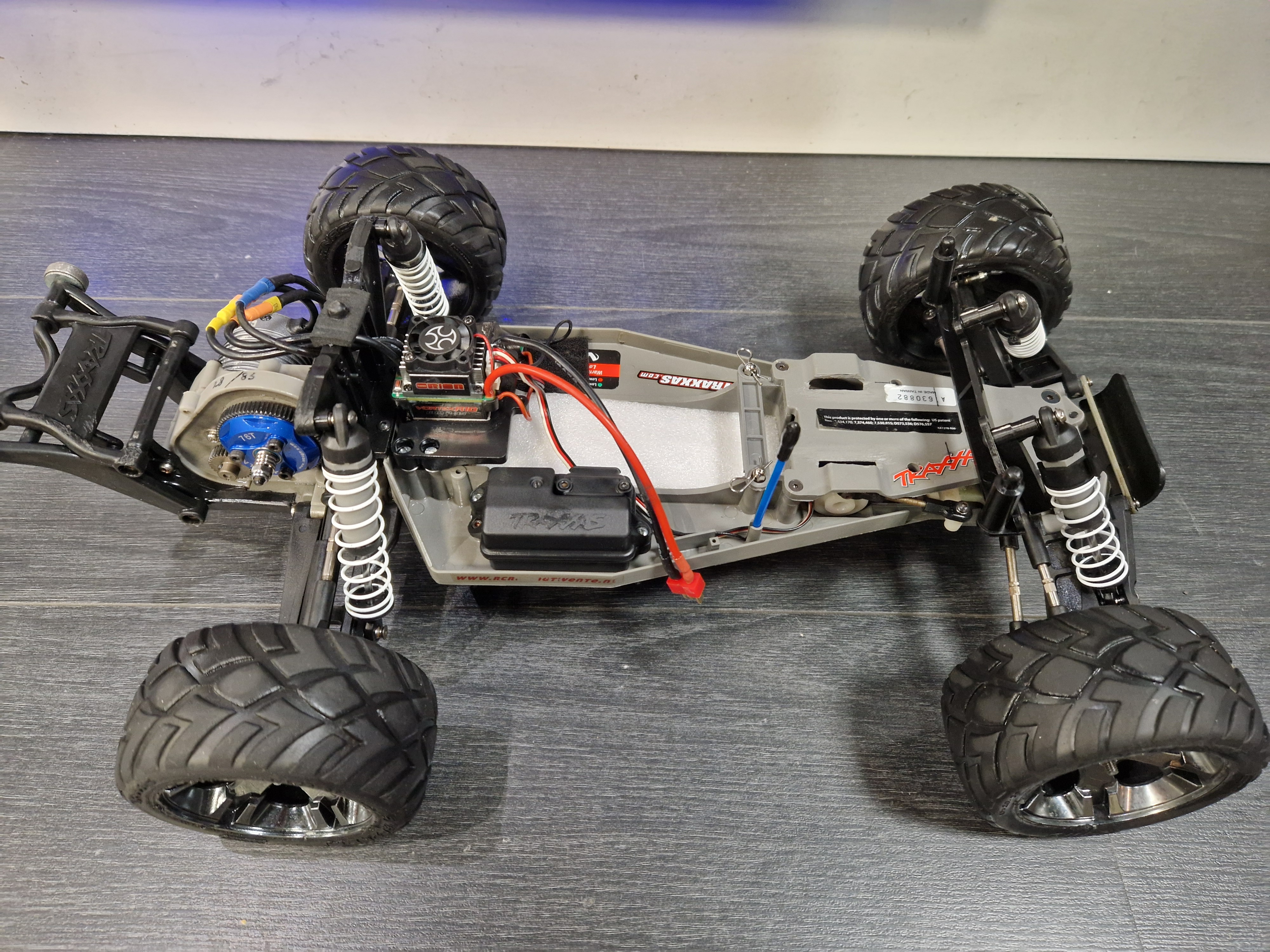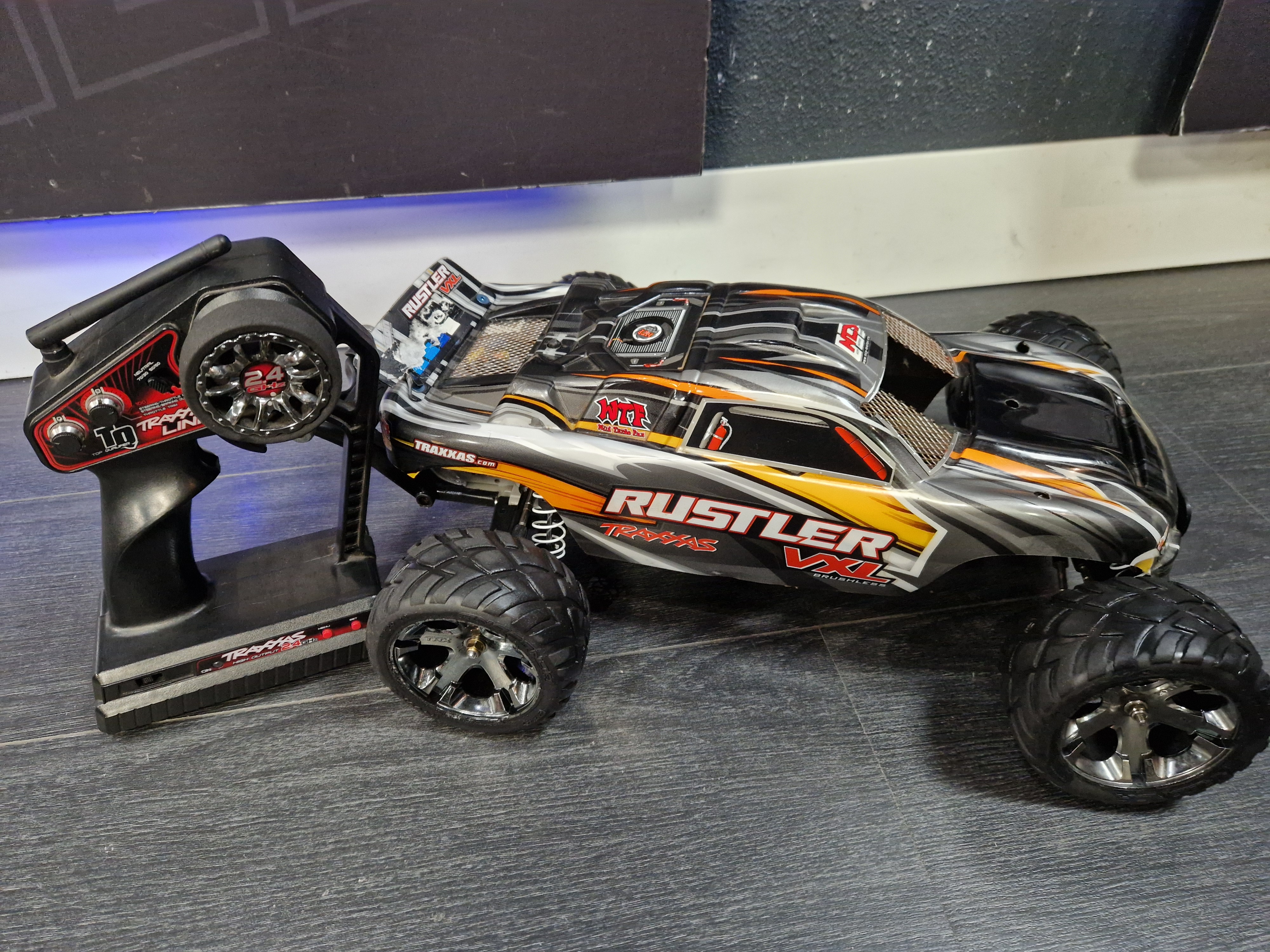 nette Traxxas Rustler 2WD voorzien van een krachtige brushless Absima motorset.