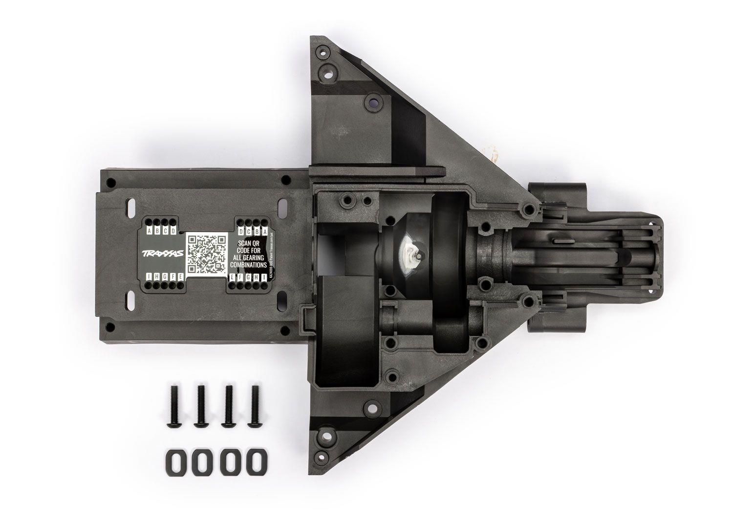 Traxxas TRX7827R Bulkhead, rear (lower)/ motor mount washers (steel) (4)/ 4x18mm BCS (4)